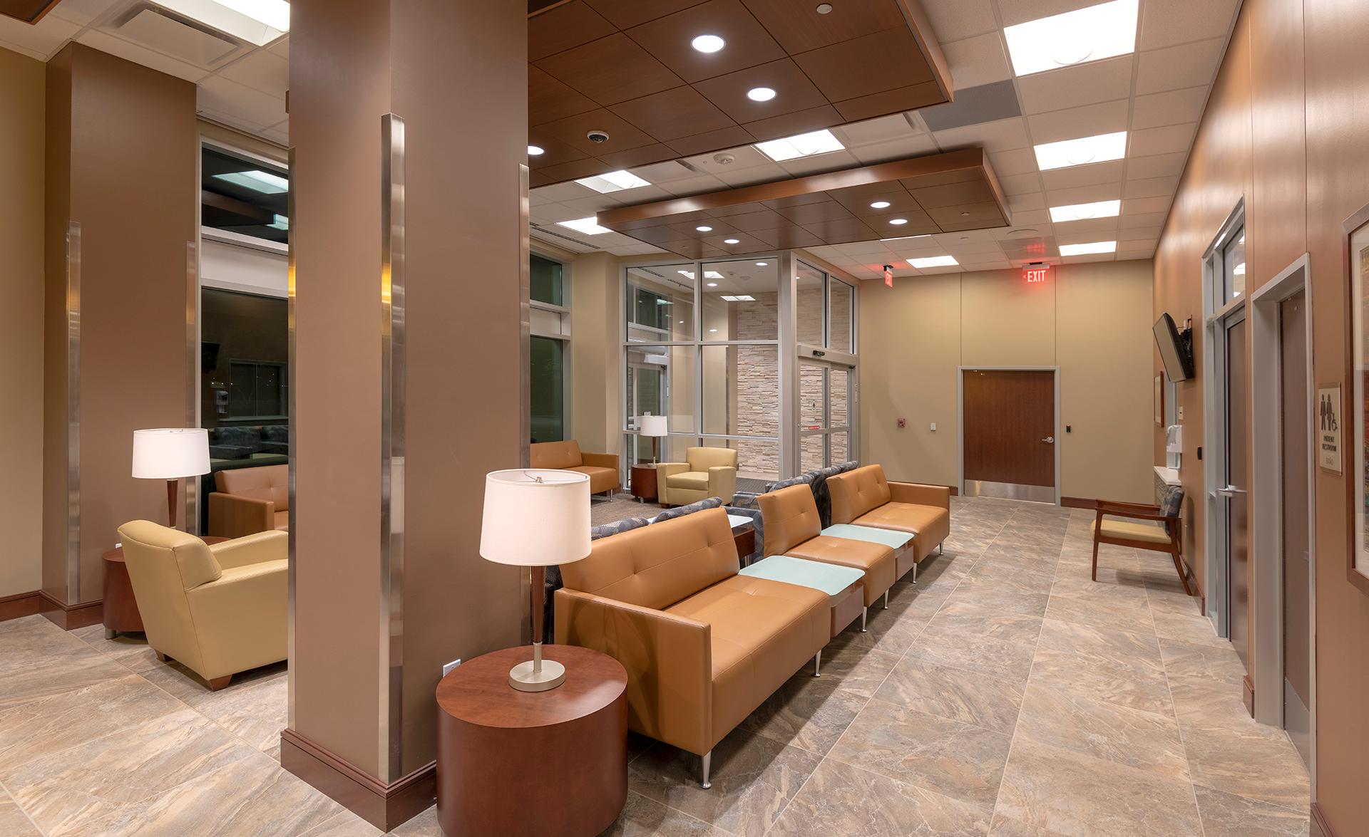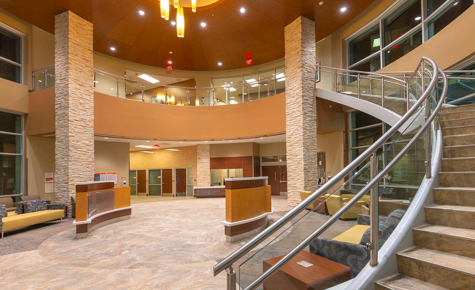 Dignity Health Arizona General Hospital in Mesa is a three-story, 94,000-sf, 50-bed hospital that was built from the ground up, using the Adeptus Hospital model in Houston, Texas. The building has a steel-frame, waterproof and fire-resistant shell with an exterior comprised of stucco, stacked stone, brick veneer, aluminum composite panels, generous glazing and roof screens. The interior features four operating rooms, a 14-bed, 24/7 emergency department, intensive care unit, pharmacy, a laboratory and radiology suite and medical offices. There is also a 279-stall surface parking lot with covered parking canopies, drought-resistant landscaping, and an adjacent helipad. Our team managed all aspects of MEP engineering including med gas connections for operating rooms and critical hook ups for Hillrom hospital beds in patient rooms.