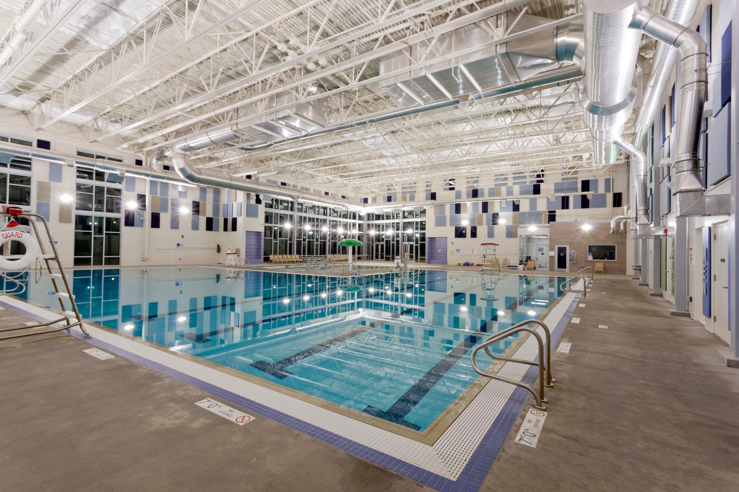 This amazing facility includes a cardio theater, free weights, a 36-foot-tall climbing wall, racquetball and smashball courts, classrooms for fitness programs, basketball courts, swimming pools, and more. All exercise areas have top-of-the-line equipment. Other amenities included are a full juice bar, child care areas, hot tubs, first aid stations, and office areas for staff.