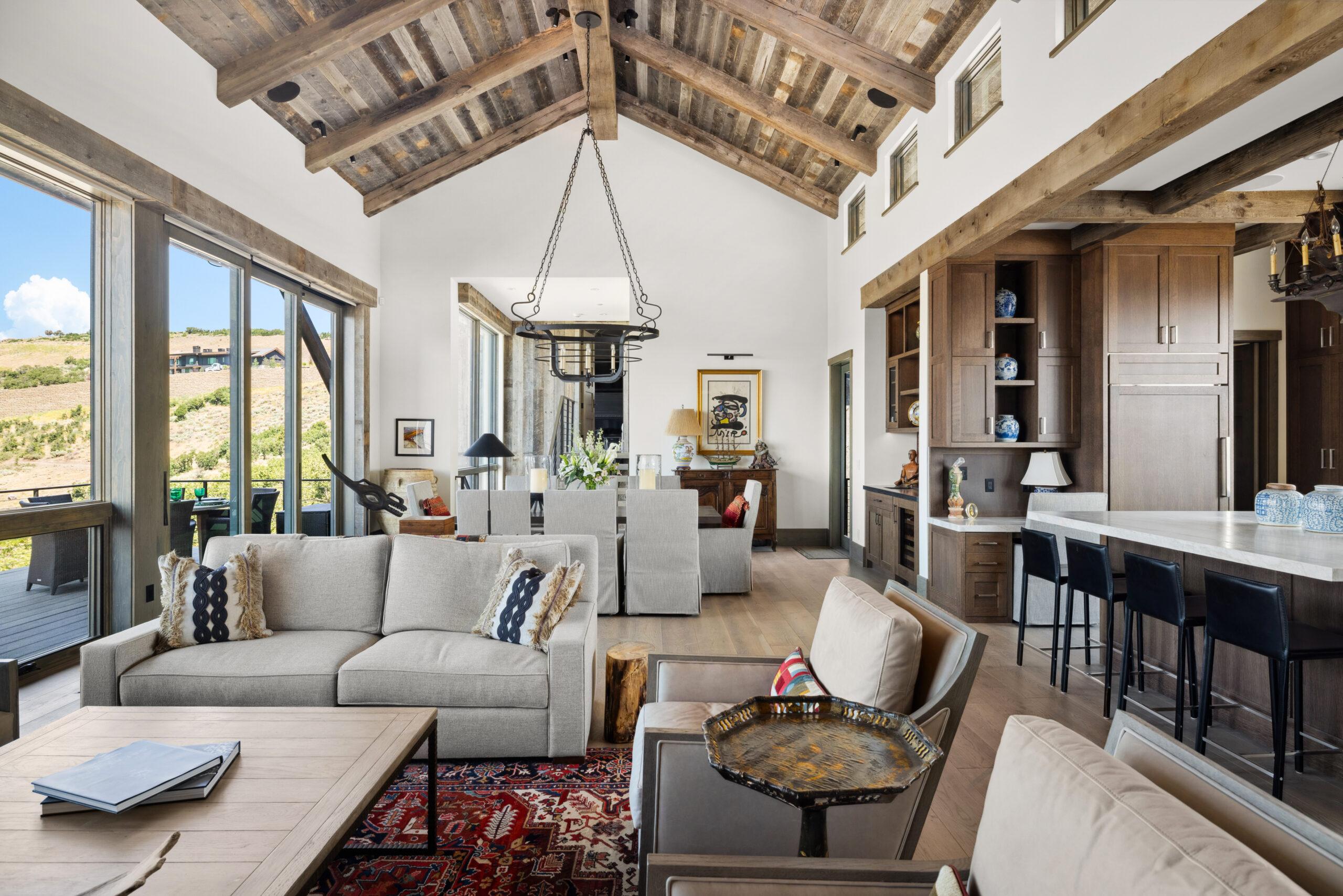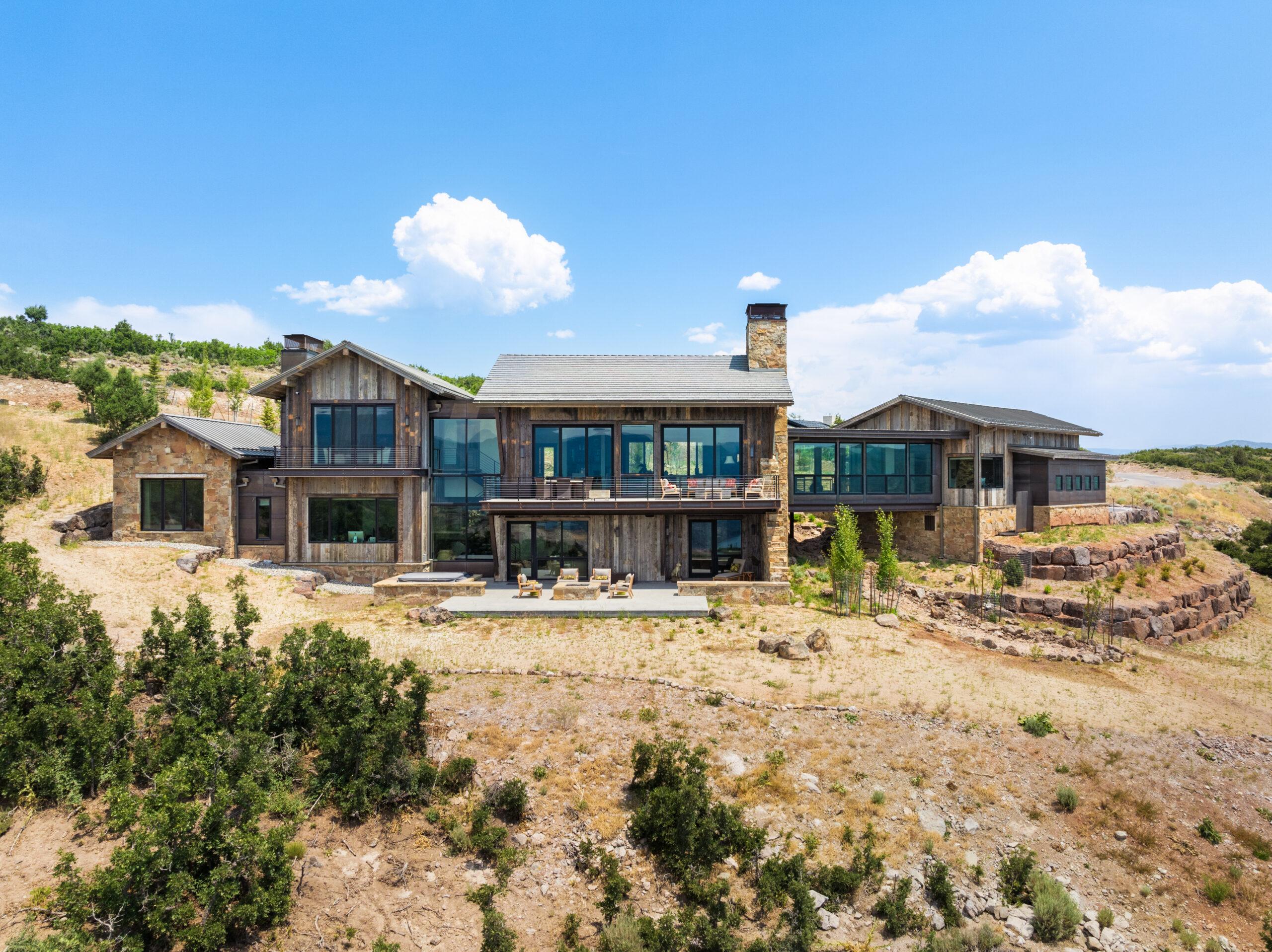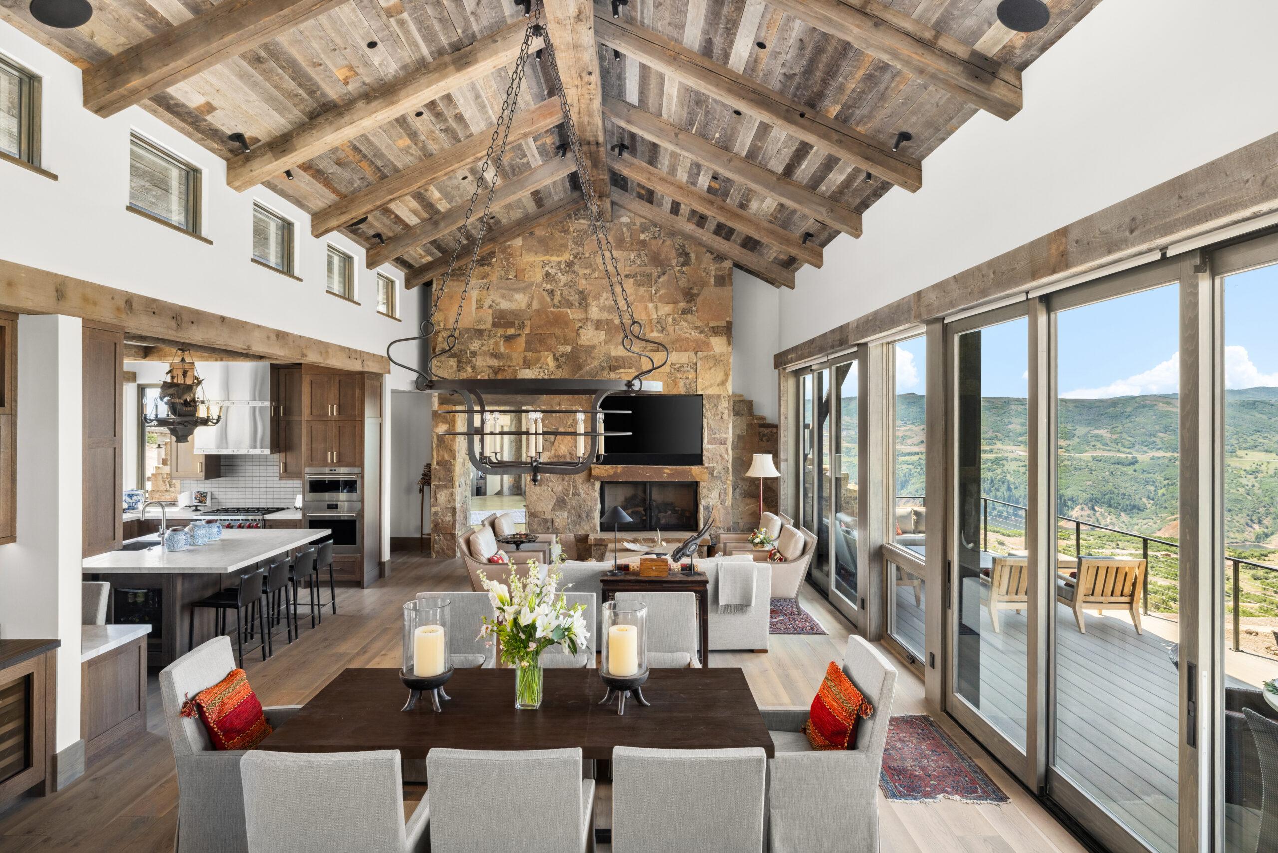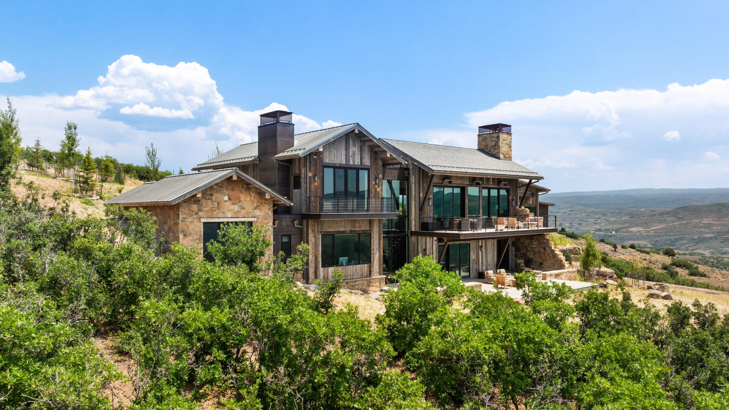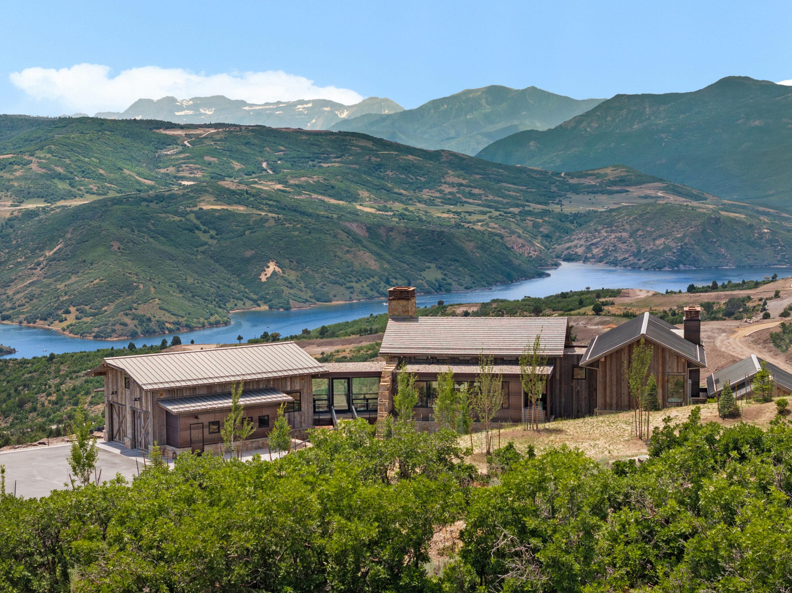 Designed by Annex Architecture, this stunning Park City home showcases a sophisticated exterior of weathered steel, expansive glass, and natural stone, while seamlessly integrating metal and wood elements throughout. Inside, soaring double-height ceilings, exposed wooden beams, and floor-to-ceiling windows flood the space with natural light, framing spectacular water views from every room. The open-concept design features a gourmet kitchen with sleek cabinetry in warm tones, fostering a cozy atmosphere that flows harmoniously from one space to the next. Multiple outdoor living spaces, including a stunning cantilevered deck, provide immersive vantage points for experiencing the tranquil surroundings, making this property both a private sanctuary and a celebration of its magnificent setting—a timeless yet extraordinary vision inspired by both the client and the unique site.