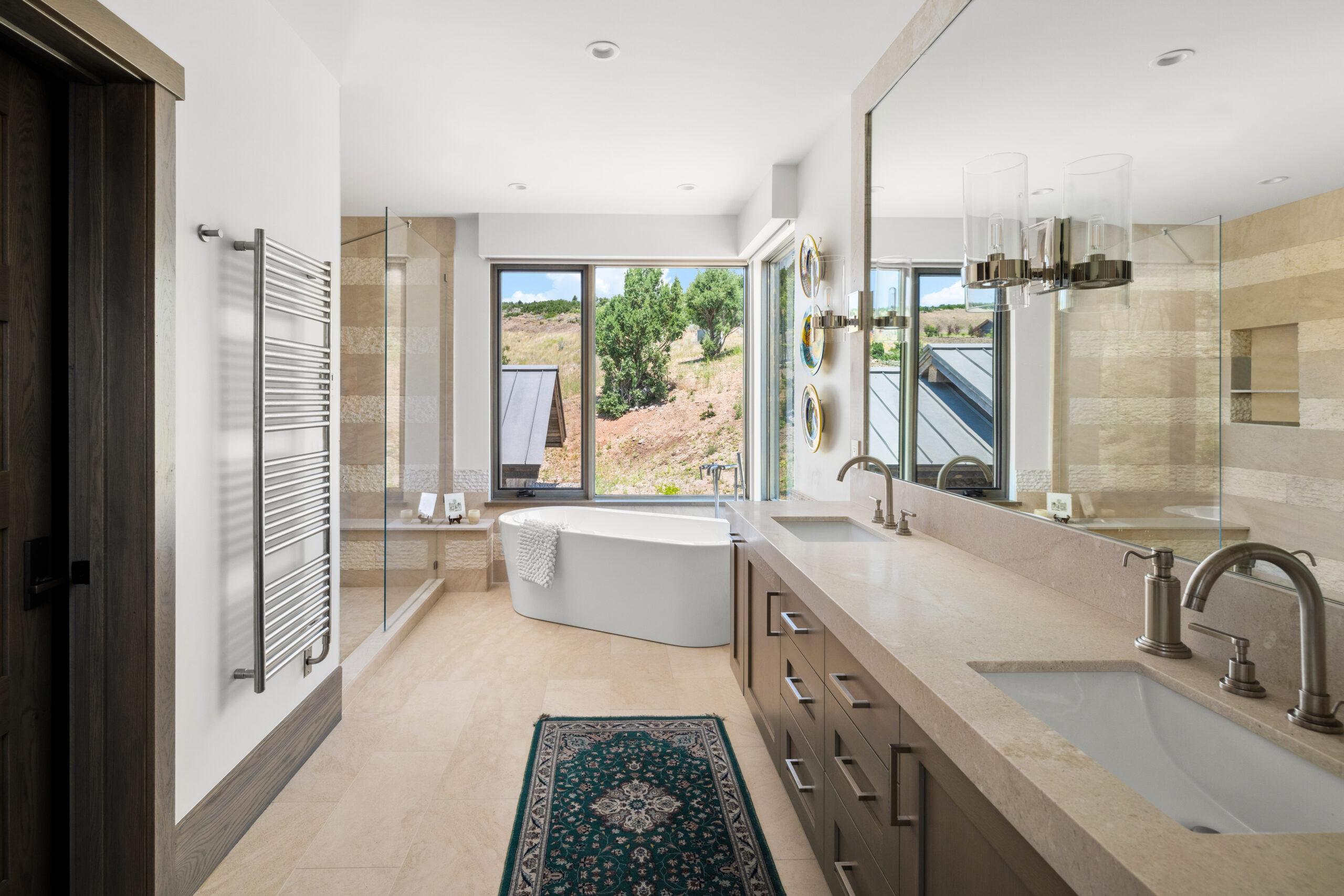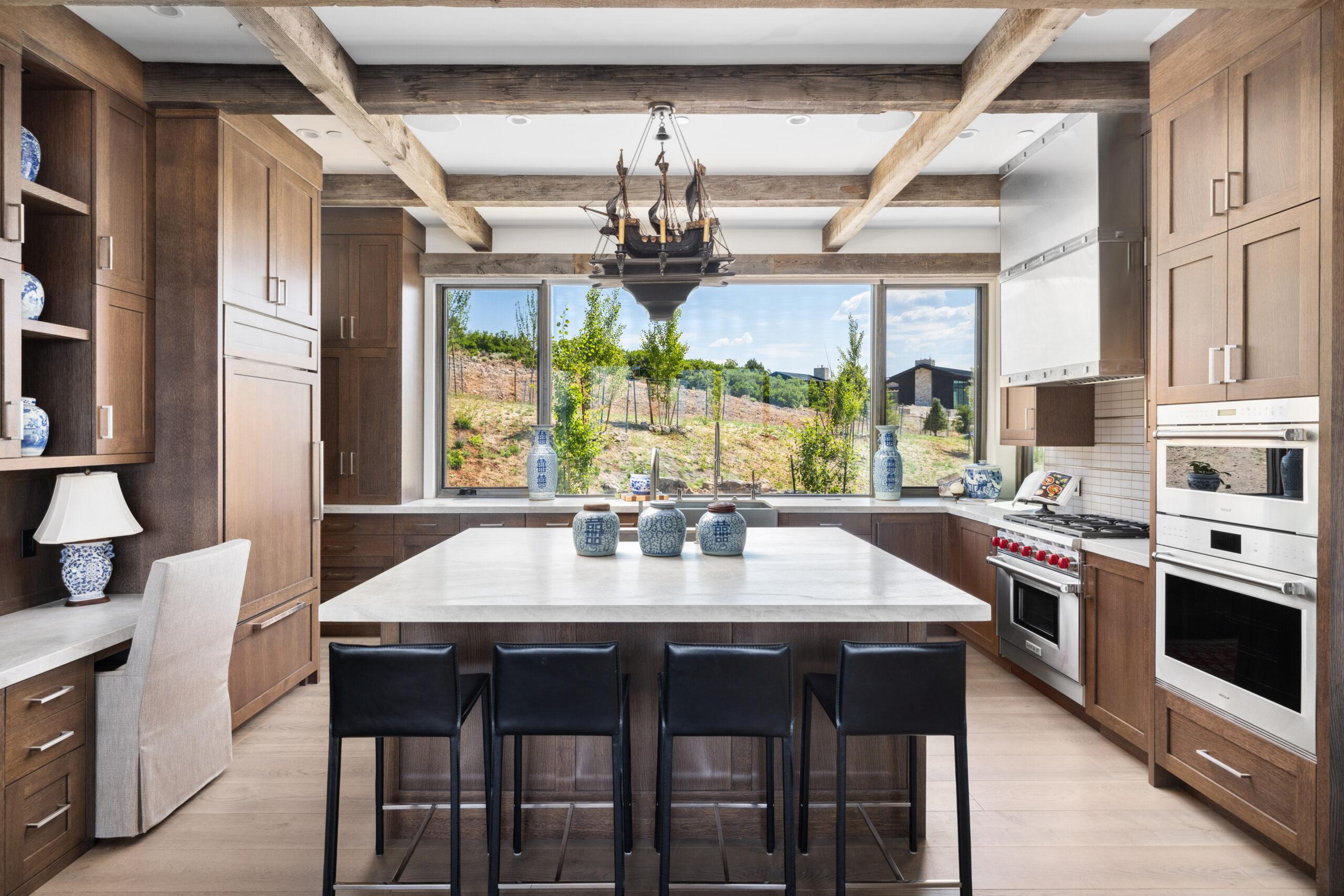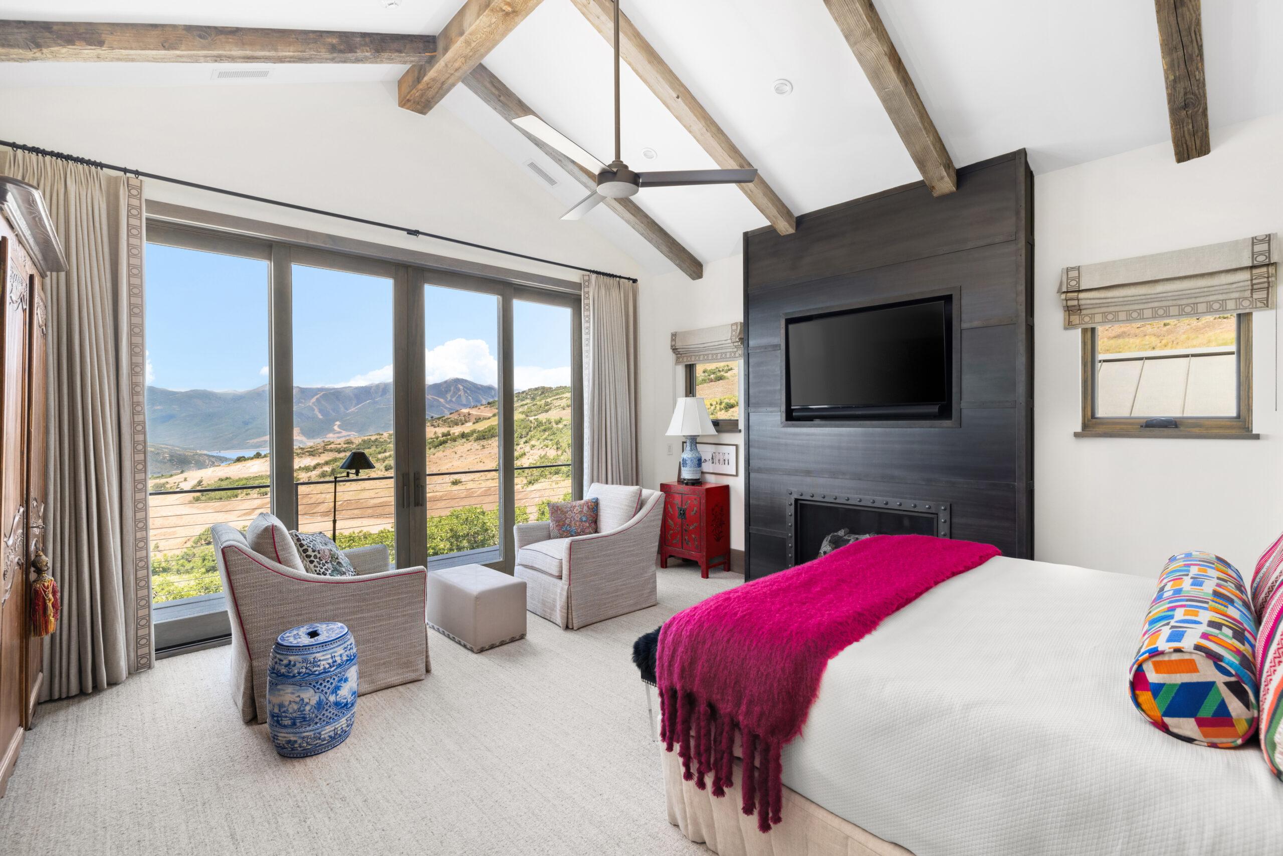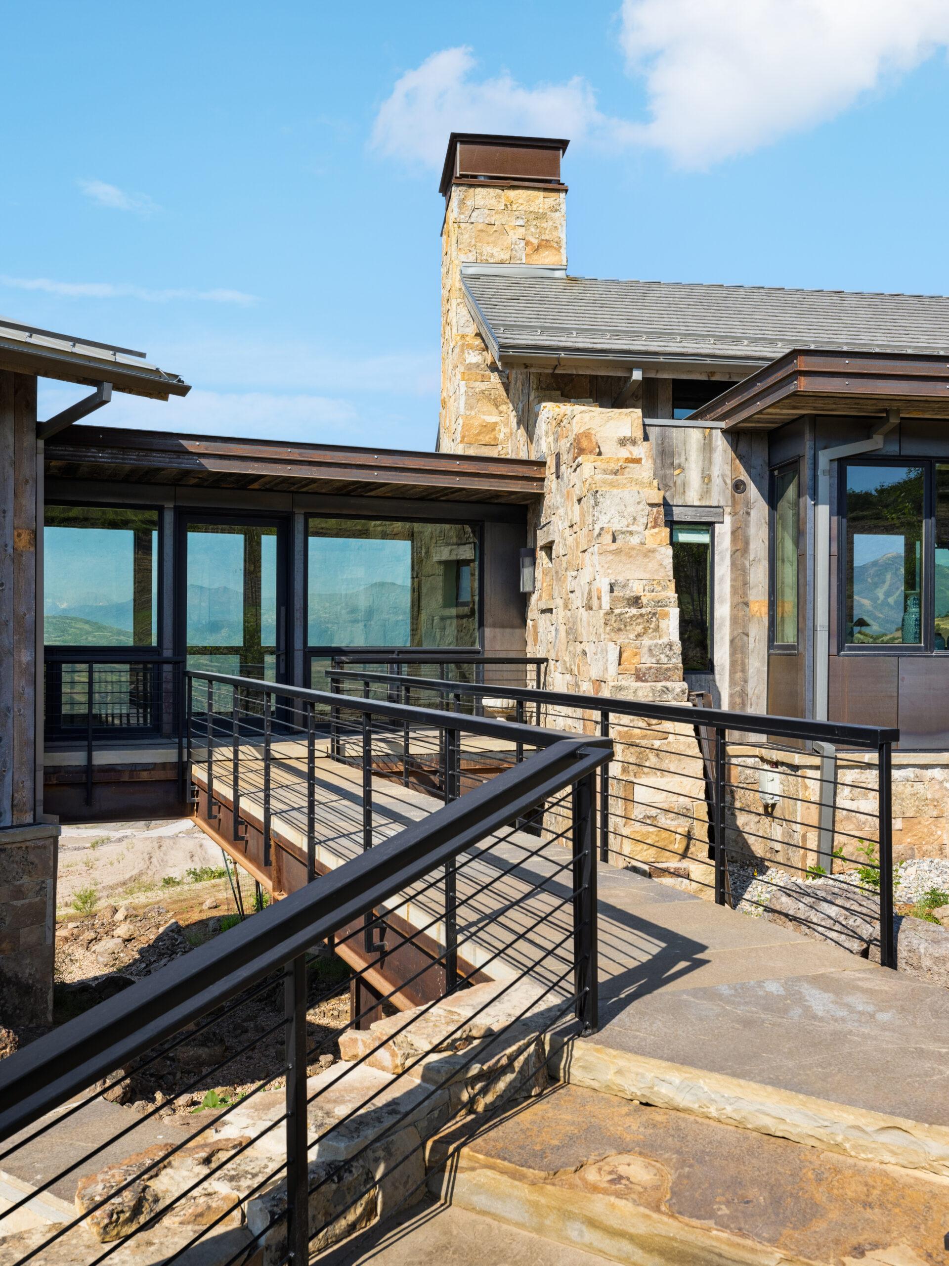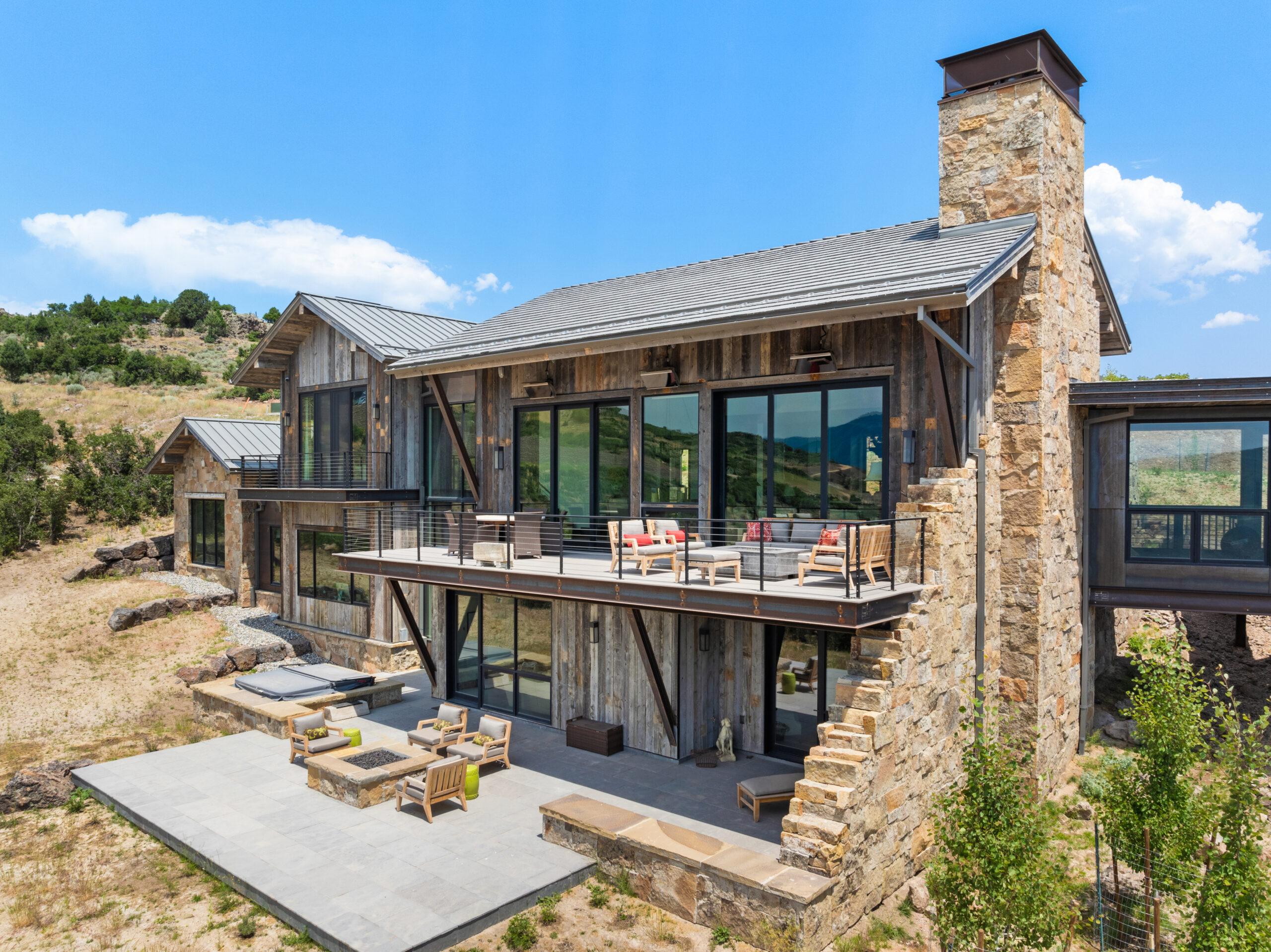 Designed by Annex Architecture, this stunning Park City home showcases a sophisticated exterior of weathered steel, expansive glass, and natural stone, while seamlessly integrating metal and wood elements throughout. Inside, soaring double-height ceilings, exposed wooden beams, and floor-to-ceiling windows flood the space with natural light, framing spectacular water views from every room. The open-concept design features a gourmet kitchen with sleek cabinetry in warm tones, fostering a cozy atmosphere that flows harmoniously from one space to the next. Multiple outdoor living spaces, including a stunning cantilevered deck, provide immersive vantage points for experiencing the tranquil surroundings, making this property both a private sanctuary and a celebration of its magnificent setting—a timeless yet extraordinary vision inspired by both the client and the unique site.