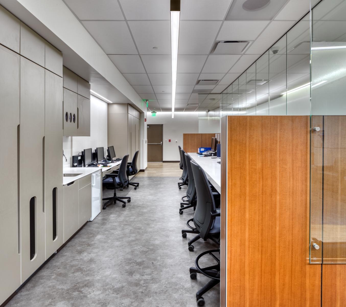 This small expansion to the McKay-Dee Hospital Cancer Center added a second linear accelerator (LINAC) vault along with associated support space. The scope included minor renovations to the existing LINAC support area and connections to the hospital’s mechanical system. The exterior facade blends sandstone cladding, both salvaged from the existing vault and new, with metal panels matching the hospital and EIFS. Notable elements included construction of complex radiation shielding and installation of a heavy-duty shielded bi-parting door. The project required a specific phasing plan to coordinate with a simultaneous PET-CT relocation project and close collaboration with the owner’s equipment vendor.
