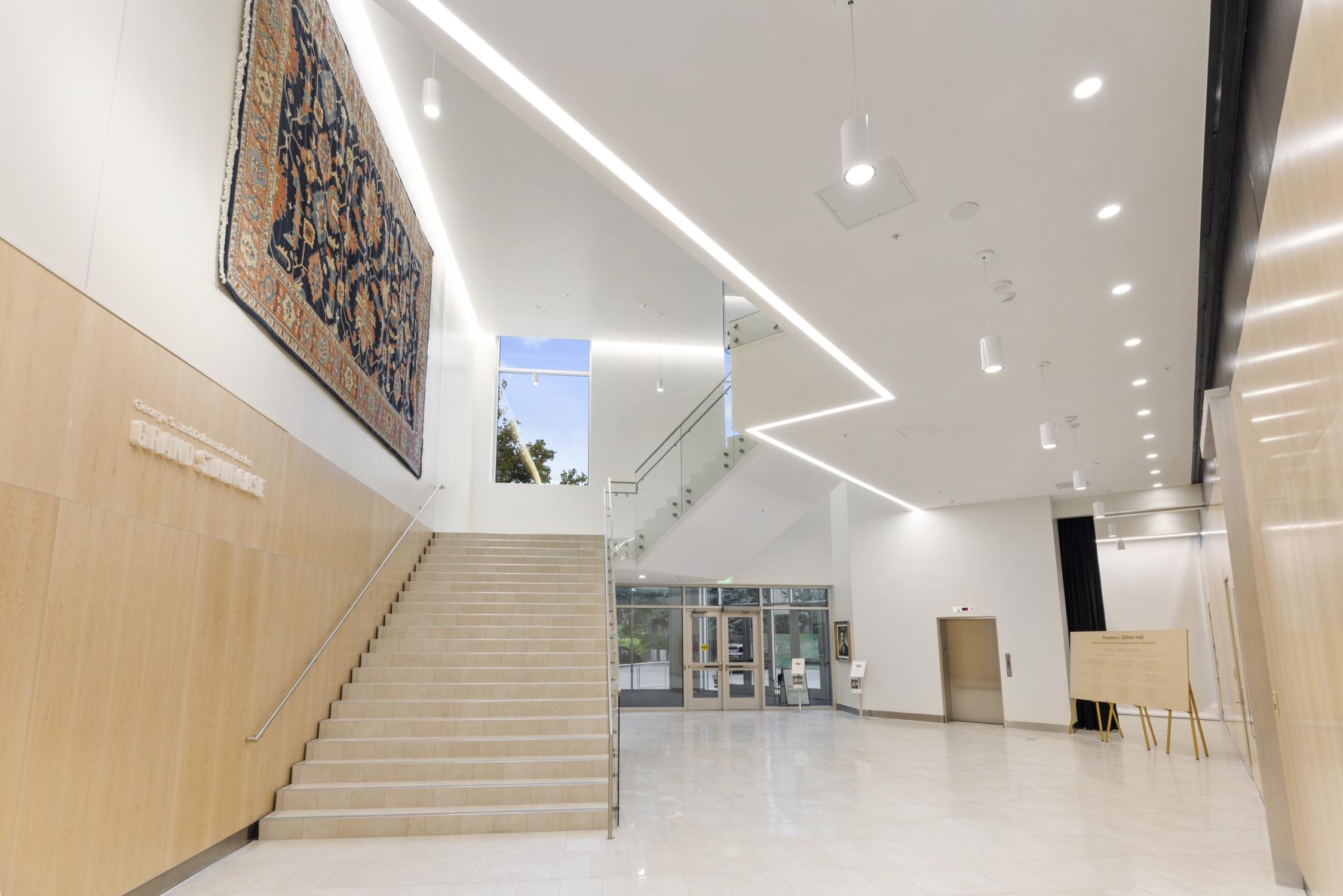 Florence J. Gillmor Hall is an expansion of Westminster College’s performing arts complex. It is a new, three-story, 23,500-sf performance and practice facility, immediately adjacent the existing Jewett Center for the Performing Arts. The steel-framed building has an exterior of brick masonry, metal panels and glass curtainwall. Spaces inside the facility include music practice studios; theatre rehearsal space; student performance lounge; dance/performance studio; lobby/art gallery; choral rehearsal/classroom; recital hall/lecture room. There are high-end finishes throughout with extensive millwork and wood paneling, large format tile, glass and stainless-steel railings, high-performance wood floors, acoustic treatments, and theater seating. The expansion will allow Westminster to better serve their exceptional performing and visual arts students through enhanced classroom, rehearsal, performance, and display spaces.